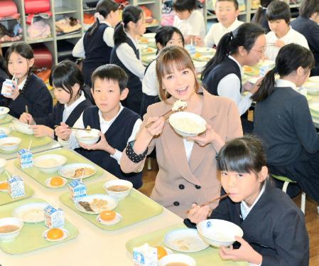 4年生の児童70人と「さわらの香味焼」、「白菜の炒(いた)め煮」、「豚汁」などを食べた香里奈は「給食は小学生のとき以来。余計な味付けがなく、素材の味を生かしていておいしいです」と予想を上回るクオリティーに満足していた。