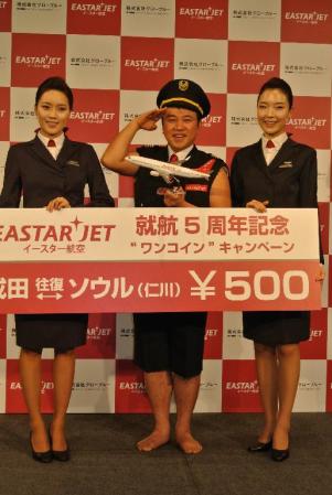 タレントのスギちゃん(39)が23日、都内で、「イースター航空 就航5周年記念キャンペーン発表会」に登場した。
