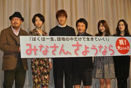 俳優の濱田岳(24)が26日、都内で、主演映画「みなさん、さようなら」の初日あいさつに、永山絢斗(23)、中村義洋監督(42)らと登場した。