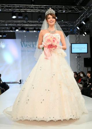 モデルでタレントのマギー(20)が26日、都内で行われたブライダルイベント「ウエコレブライダルフェア」に出演し、デザイナーの桂由美氏(80)によるウェディングドレスをまとった。