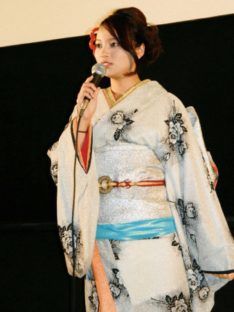 ナンバー1キャバ嬢を演じたことから、おいらん風のきらびやかな着物姿を披露し「こういう着物は初めて着たので、どう動いたらいいか…」と照れ笑い。トークショーでは、撮影中には1カ月で10キロの減量に挑んだことを明かし「4時間半身浴をして水分を出したり、ボクサーの減量みたいな感じ。現場にはいつも差し入れが置いてあって、つらかったです」と苦い記憶を振り返っていた。
