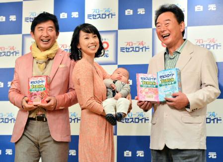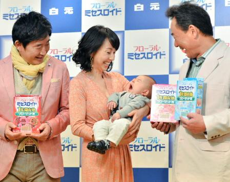 8日から全国でオンエアされる新CMは、ベッドで寝ている理汰郎君の顔が修氏に変わり、石田が仰天して飛びのくという内容。修氏はベビー用の帽子をかぶっての撮影で、理子は「よく仕事を受けたな。本当によくやったなと思いました」と感心しきり。一方の石田は「心の底から笑いました」と言い切った。また修氏の撮影はNG連発で35回目のテークでOKが出たという。