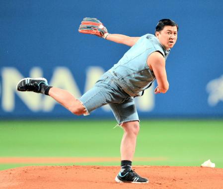 愛知出身で元高校球児。「始球式にあこがれていた」というだけあって、仕事の合間に投球練習を積んできたという。結果は90キロの直球で空振りを奪った。「ワイルドだろ」で人気を博したが、野球では“ワイルド”ピッチにならなかった。