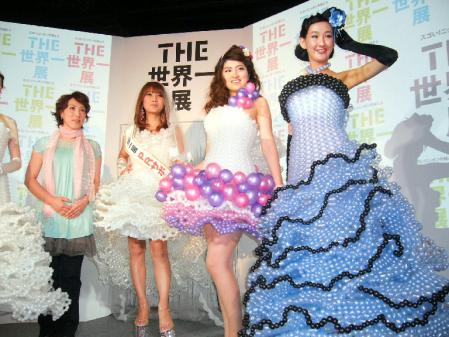 同展では、日本が誇る世界一の技術や製品を展示。はるなが「世界一」となったニューハーフ国際大会「ミスインターナショナルクイーン2009」のティアラが特別公開中。