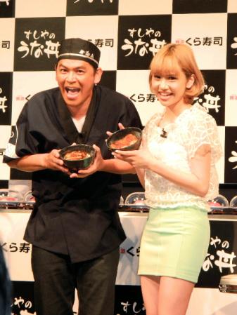 お笑いコンビ・ますだおかだの岡田圭右(44)が29日、都内で行われた無添くら寿司「すしやのうな丼」発表会に出席した。