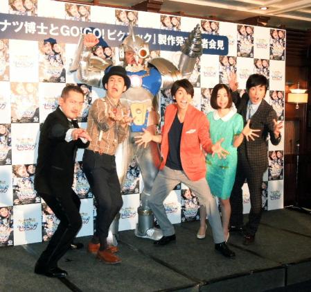 舞台は発明家・ドーナツ博士の研究所でテレビ撮影クルーと怪盗団が入り乱れるコメディー作品。お笑いコンビ・キングコングの西野亮廣(あきひろ)が脚本を手がけ、俳優・後藤ひろひとが演出を担当する。後藤を敬愛する西野は「10年以上の付き合いなので“このくらいできるようになった”というのを見せたいですね」と意気込んでいた。ほかに俳優・相葉裕樹、女優・木下美咲らも出演する。