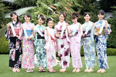 昨年行われた「第13回全日本国民的美少女コンテスト」ファイナリストによるユニット・X21の8人が4日、都内で浴衣姿をお披露目した。