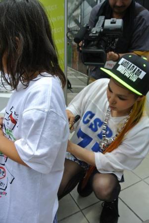 歌手のAI(31)が20日、都内で、東日本大震災の復興支援Tシャツの手売りイベントを行った。