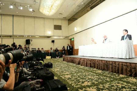 会見場には600人の報道陣が殺到。ムービーカメラの数は70台にのぼり、日本のみならずアジア、ヨーロッパなど11の国と地域からもメディアが駆けつけ、流ちょうな日本語で引退を決めた理由などを質問した。