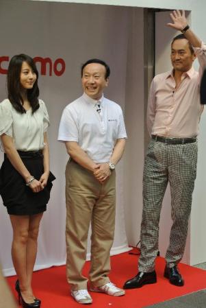 NTTドコモのCMキャラクターを務める俳優の渡辺謙(53)が20日、東京・ドコモショップ丸の内店で、米アップルのスマートフォン新機種「iPhone 5c/5s」の発売セレモニーに、堀北真希(24)と登場した。ドコモから初お目見えのiPhoneに、「自分に合ったものは何なのかを、好きなように選べるときが来た。ドコモの力を発揮できる。どうやって盛り上げていけるか考えて、いろんな形でCMを含めて協力したい」と競合他社のau、ソフトバンクへの“倍返し”へ、援護射撃を宣言。
