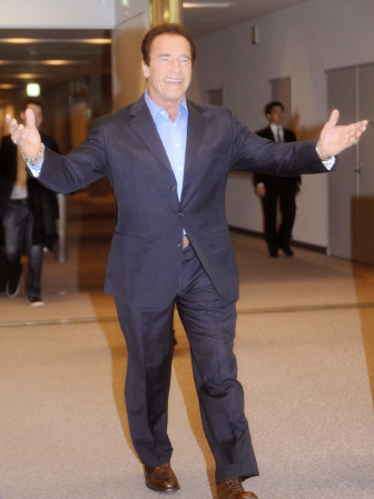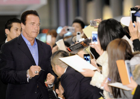 空港では、1972年の初来日から40年以上も日本ファンと触れ合ってきたシュワちゃんを約300人が歓迎。笑顔でサインに応じた元祖タフガイは「ビー・バック(戻ってきたぜ)!!日本は素晴らしい国だ。愛してるよ」とハイテンションだった。