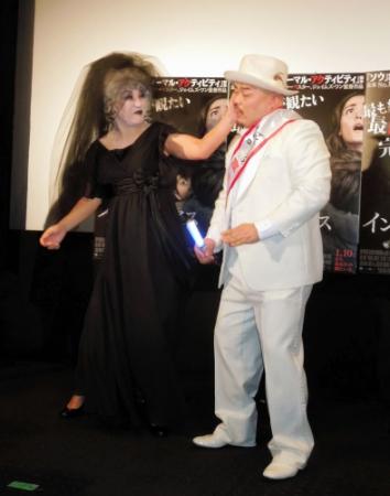 タレントの北斗晶(46)が11日、都内で行われた米ホラー映画「インシディアス 第2章」のPRイベントに登場し、お笑いトリオ・安田大サーカスのクロちゃん(37)にビンタを連発した。