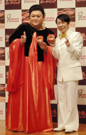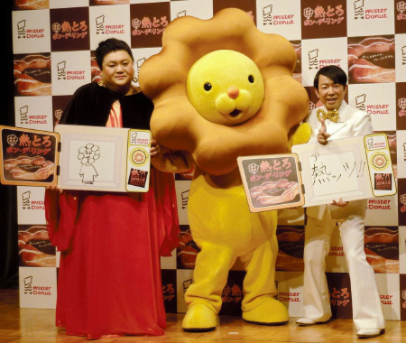 タレントのマツコ・デラックス(41)が7日、都内でミスタードーナツ史上初の温める新商品「熱とろポン・デ・リング」の新CM発表会に登場した。