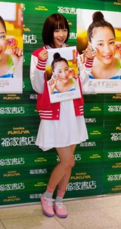 女優の広瀬すず(15)が22日、東京・福家書店新宿サブナード店で「広瀬すずスクールカレンダー2014‐2015」の発売記念イベントを行った。