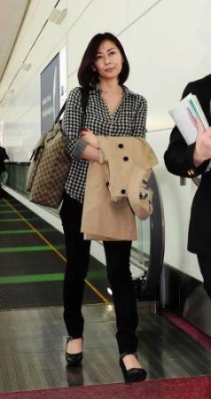 女優の中山美穂(44)が10日、滞在中のフランス・パリから東京・羽田空港に帰国した。