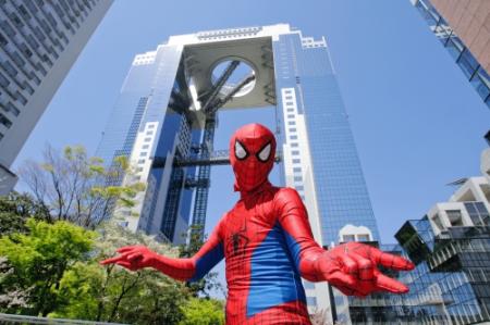 映画「アメイジング・スパイダーマン2」(25日公開)の主人公スパイダーマンが14日、大阪市の梅田スカイビルに出没。「世界の建築TOP20」にも選出されている地上173メートルの高層ビルで、超危険なクライミングパフォーマンスを展開した。ビルの広報担当者によると、93年の建設以来、建設関係や清掃関係者以外で登ったのはスパイダーマンが初めて。