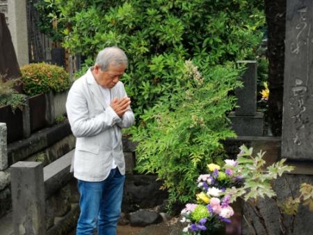 俳優の左とん平(77)が11日、東京・谷中の全生庵にある三遊亭圓朝さんの墓所を訪れ、主演のミュージカル「死神」(9月3~9日、東京・紀伊國屋ホール)の成功祈願をした。