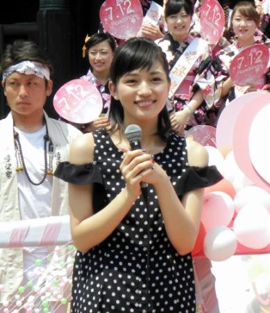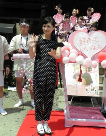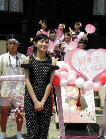 女優の川口春奈(19)が29日、大阪市天王寺区の愛染堂で行われた主演映画「好きっていいなよ。」(7月12日公開)のPRイベントに登場した。