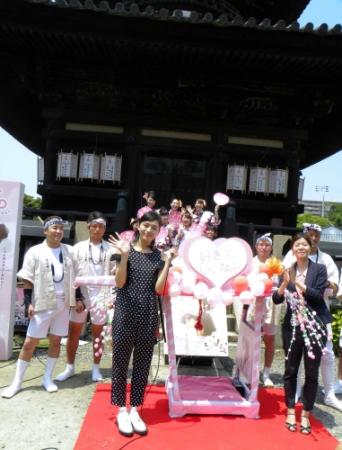 天神祭、住吉祭とともに大阪三大夏祭りの一つで、恋愛成就のご利益で有名な同所で開催される「愛染まつり」とのコラボ。“スペシャル愛染娘”として特製の宝恵(ほえ)かごに乗り込み、高々と担ぎ上げられた川口は「恥ずかしかったです。自分は何者なんだと思いました。でも貴重な経験ができました」と笑顔で振り返った。