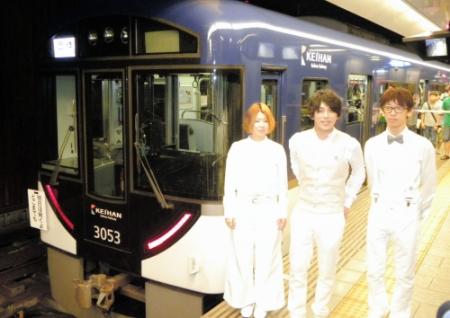 臨時列車はファン200人を乗せて中之島駅を出発。車内放送によるトークの後、メンバーが各車両を回って生ライブでファンと触れ合った。移動後は枚方市のくずはモール特設ステージでファン800人の前でミニライブを開催。「明日は‐」を含む全6曲を熱唱。5代目おけいはんの中之島けい子さんも応援に駆けつけて盛り上がった。