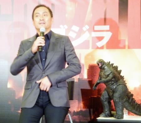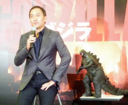 俳優・渡辺謙(54)が14日、大阪市内で行われた米映画「GODZILLA ゴジラ」(25日公開)のプレミア試写に登場。イベント後に会見し、インターネット上で一時ささやかれた「(ハリウッド版)ゴジラは太っている」との噂を否定した。