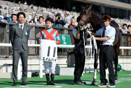 ディープインパクト産駒のエイムハイ(牡、栗東・安田)が力強く伸びて接戦を制した。道中は5番手で前を見ながらリズム良く追走。直線で12番人気ノワールギャルソン(2着)が内ラチ沿いから外へ進路を切り替えて抜け出したが、坂上から一気に差を詰めて最後は首差で勝利をものにした。タイムは1分37秒0。06年紫苑Sを制した母サンドリオンの半弟には10、11年のJCダートなどを制したダート王トランセンドがいる。芝のマイル戦で上がり3Fはメンバー最速タイの33秒6を記録。騎乗した戸崎圭太騎手は「じわじわと伸びる感じでした。しっかりしてくれば、もっと走れると思いますよ」と語った。なお、2番人気のボルゲーゼは勝ち馬と並んで差を詰めたが、さらに首差の3着だった。