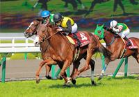 満開の桜を背景に引き上げるカフェブリリアント=阪神競馬場(撮影・石湯恒介)