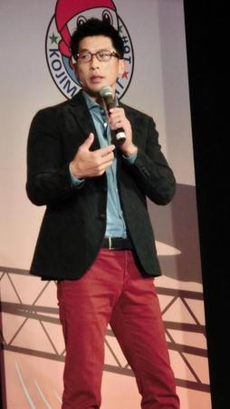 31日の児島ボートにスペシャルゲストが登場。阪神タイガースに新しく就任した矢野燿大1軍作戦兼バッテリーコーチ(46)のトークショーが行われた。ユニホームとは違うカジュアルな服装で現れた矢野はメガネ姿。「マイナビABCゴルフの中継で田中秀道さんと一緒になってプレゼントされた。今日初めてこのメガネをかけました」と選手、解説者時代とは違う顔を見せた。
