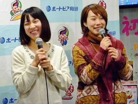 女子ボートレーサーの守屋美穂(27)=岡山・101期・B2=が29日、大阪市北区の場外舟券売場「ボートピア梅田」に来場。今井美亜(25)=福井・106期・A2=とともにトークショーに出演した。