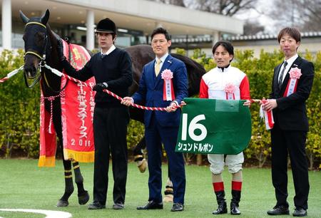 4番人気のシュンドルボン(牝5歳、美浦・矢野英一厩舎)が重賞初制覇を果たした。道中は中団で1番人気のルージュバックをマークする形で運び、直線で外に持ち出すと反応良くスパート。先に抜け出したルージュバックを首差とらえた。勝ちタイムは1分50秒3。「向こう(ルージュ)は強い馬なのでどうか、と思ったが、差し切ってくれました」と吉田豊騎手は満面の笑み。「乗りやすい馬だし、大きいところでも頑張ってもらいたい」とG1戦線での活躍に期待を込めた。