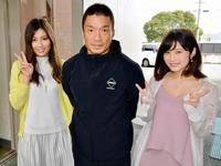 玉野競輪の検車場を訪れたグラビアアイドルの佐々木麻衣(左)と橘花凜