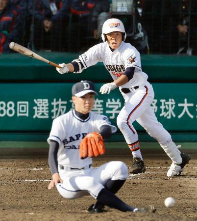 春夏通じて初出場の明石商は九回に藤井がスクイズを決めて3-2で日南学園(宮崎)にサヨナラ勝ちした。