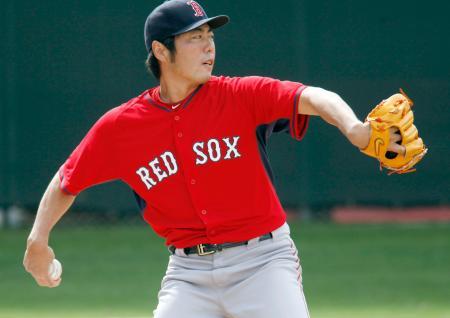 左太もも裏を痛めて出遅れているレッドソックスの上原はブルペンで36球を投げて調整した。