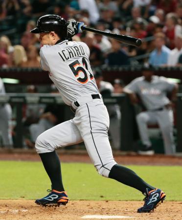 【フェニックス共同】米大リーグは11日、各地で行われ、マーリンズのイチローはフェニックスでのダイヤモンドバックス戦の七回に代打で一塁強襲安打を放ち、ピート・ローズが持つメジャー歴代1位記録の4256安打まで日米通算であと4とした。チームは3-5で敗れた。
