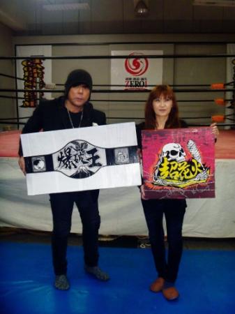 また、この日、来年1月23日の大阪・ボディメーカーコロシアム第2競技場大会から、これまでの「大花火」を、爆破規模を2倍にした「超花火」に改称すると発表。「地獄に一番近いという意味で墓石(=御影石)を使用した」(大仁田)という『爆破王ベルト』を新設し、初代王者決定戦を行うと明かした。新王座はシングル戦で争い、「僕に権利はあると思う」という大仁田の出場は決定。対戦相手は邪道の指名になることが有力とした。