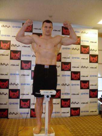 前日計量が30日、都内で行われ、IGF王者のミルコ・クロコップが、遅刻した挑戦者の石井慧に激怒した。