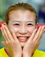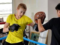 練習後、大粒の汗を流す高野人母美=東京・新宿の協栄ボクシングジム(撮影・佐々木彰尚)