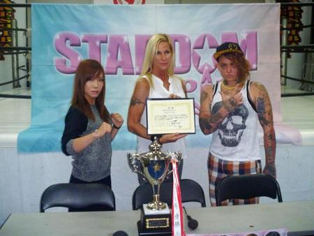 スターダムのコミッショナーに就任した元女子プロレスラーのメドゥーサさんが15日、都内で行われた会見に出席した。23日・後楽園ホールで行われる「5★STAR GP2015」優勝決定戦で激突する宝城カイリとハドソン・インヴィーに対し、メドゥーサさんは「スターダムはシリアスな団体。(23日は)2人にとって重要な日になる。必ずグレートな試合になると思う。ベストな選手が勝ち残る」と言葉を送った。