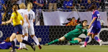 後半20分過ぎには雨が降り出し、同40にはFW猶本光(浦和)が出場し代表デビュー。その1分後、日本は宮間がCKを蹴り、これに途中出場の菅沢優衣香(千葉)が鮮やかに合わせて決勝ゴールを挙げた。
