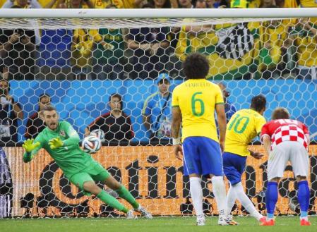 前半11分にDFマルセロ(Rマドリード)のオウンゴールでまさかの先制を許したブラジルだったが、すぐに反撃。29分に敵陣中央に攻め込んだところでMFオスカル(チェルシー)が相手に囲まれながらも粘り強くキープ。ネイマールにパスを通すと、ネイマールは巧みなドリブルからやや左に持ち込みながらエリア外から左足シュート。グラウンダーのシュートはクロアチアGKプレティコサ(ロストフ)の横っ飛びも届かないコースで右ポストをたたき、そのままネットを揺らした。