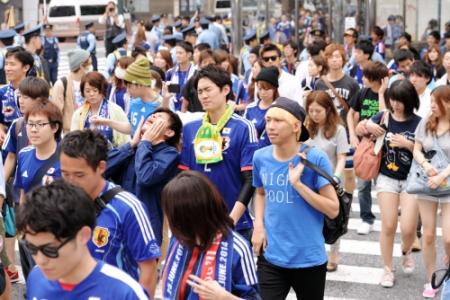 交通規制を終え敬礼する女性のDJポリス=東京・渋谷スクランブル交差点(撮影・開出 牧)