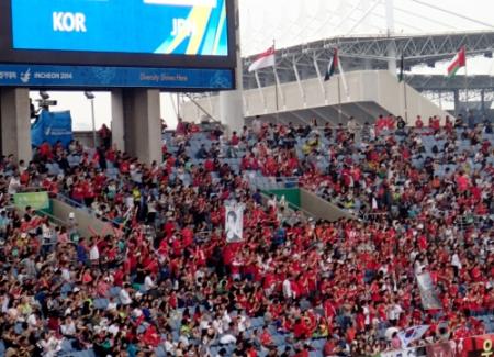 日韓戦試合開始15分前のスタジアム=文鶴競技場