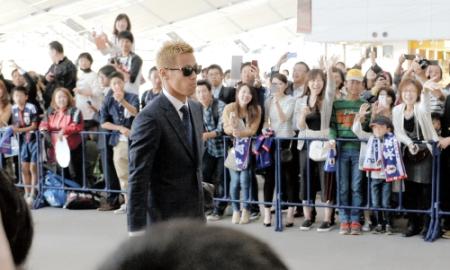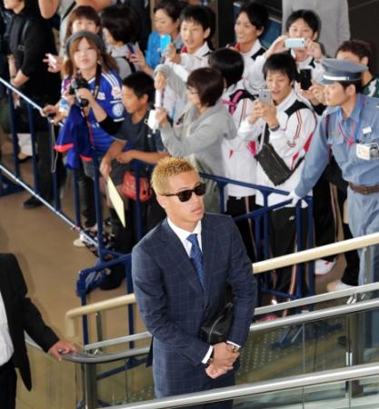 選手は無言のままバスに乗り込んだが、ファンからは「ホンダ!」などの声援が飛び、FW本田圭佑(ACミラン)が子供のファンにサインする場面もあった。