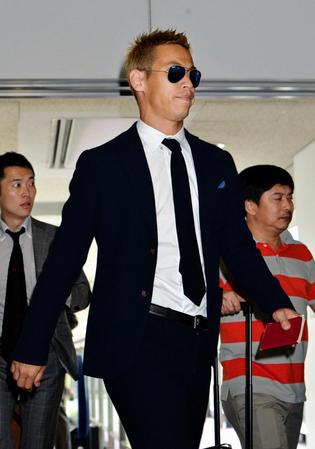 白いシャツに濃紺のスーツとネクタイ、黒の革靴にトレードマークのサングラス姿の本田は、居合わせたファンのサインに求めに応じるなどリラックスした表情。言葉を発することなく、ゆっくりとした足取りで迎えの車に乗り込んだ。