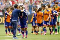 表彰を終え、サポーターに手を振る佐々木監督=バンクーバー(共同)