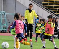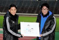 子供達からのサプライズプレゼントの人文字に笑顔の香川真司=ユニバー記念競技場