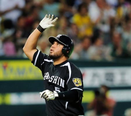阪神のゴメスが先制の9号2ランを放った。初回、鳥谷が四球を選び2死一塁で打席へ。カウント1‐1からの岩崎の変化球に鋭く反応し、力強く振り抜いた。