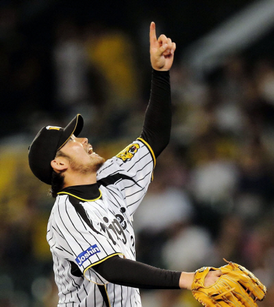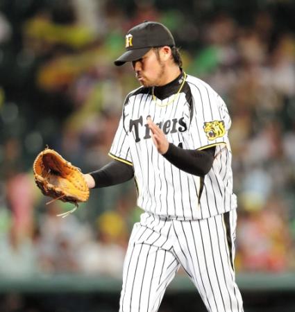 阪神の先発・岩田が7回4安打1失点(自責点は0)で降板した。