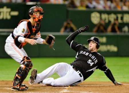 1‐1の同点で迎えた四回。先頭のメッセンジャーが杉内の外角直球をとらえて、右中間を破る二塁打。上本は四球を選び、前の打席で同点ソロを放っていた俊介が今度は三塁前に完ぺきな送りバントを決めて1死二、三塁とした。