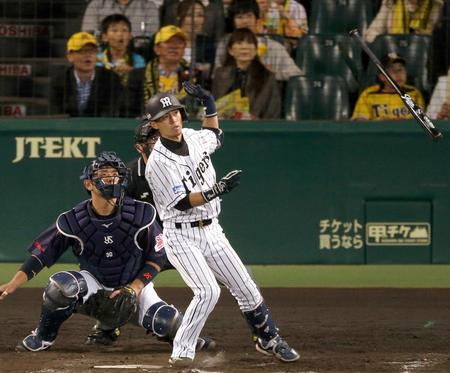 阪神が勝ち越した。1-1の同点で迎えた七回だ。この回から登板したヤクルト2番手の中沢に対し、先頭の福留が中堅フェンス直撃の大飛球を放った。